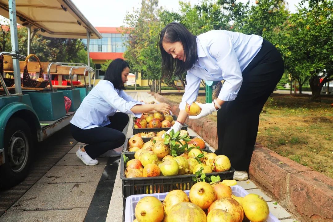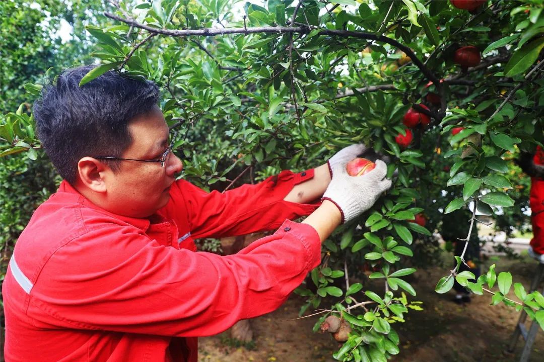 “石榴吃过不少,但亲身体验采摘石榴还是第一次。通过参加采摘活动,一股爱矿如家的自豪感油然而生。”该矿2023年新入职大学生员工李俊莹说。