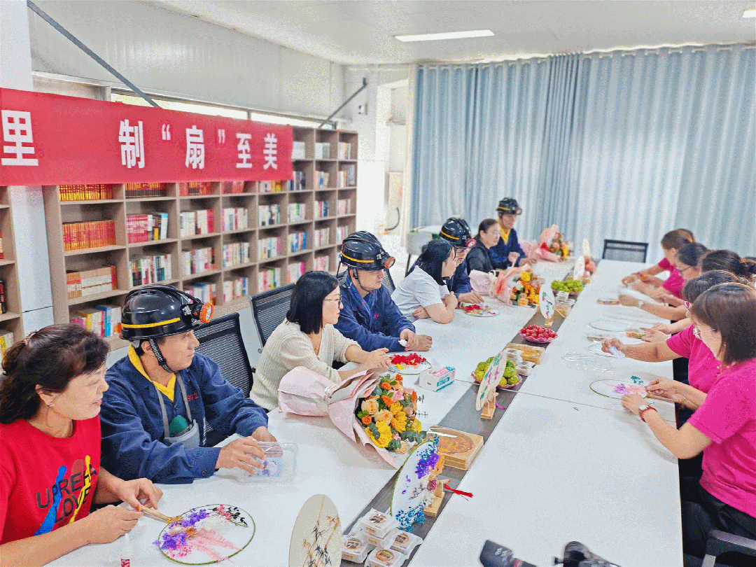 亲情是打开职工安全心门的“钥匙”,该矿工会女工家属协管会用最具温度的“亲情式”协管服务,守住职工的“平安心”,守牢“安全门”。随后,矿嫂一行来到该矿职工书屋,进行“制‘扇’至美”手工活动。