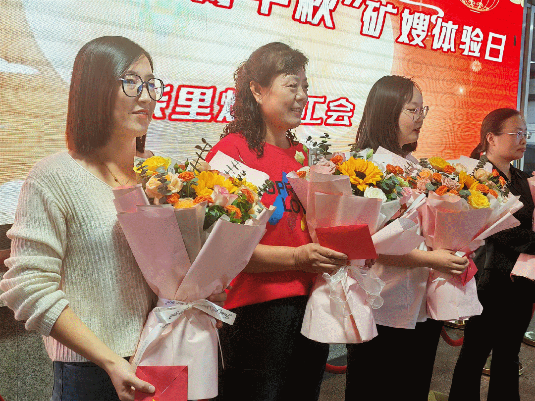 矿嫂们为自己的丈夫擦拭脸上的汗水,并递上鲜花和“安全情书”,用一个个深情的拥抱、一句句朴实的话语温暖着丈夫的心,现场的一幕幕画面温馨感人。