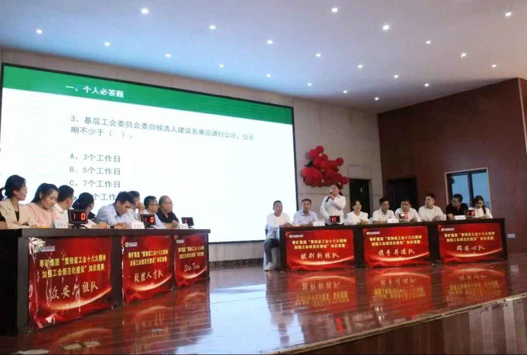 “我选择30分分值的第二题”。近日,枣矿集团工会“贯彻省工会十六大精神 加强工会规范化建设”知识竞赛在安顺公司紧张而又激烈地进行。来自蒋庄煤矿的王涛在抢答环节率先向难度系数最高的简答题发起冲击,一分不差的答出所有要点,台下欢呼四起,掌声雷动。