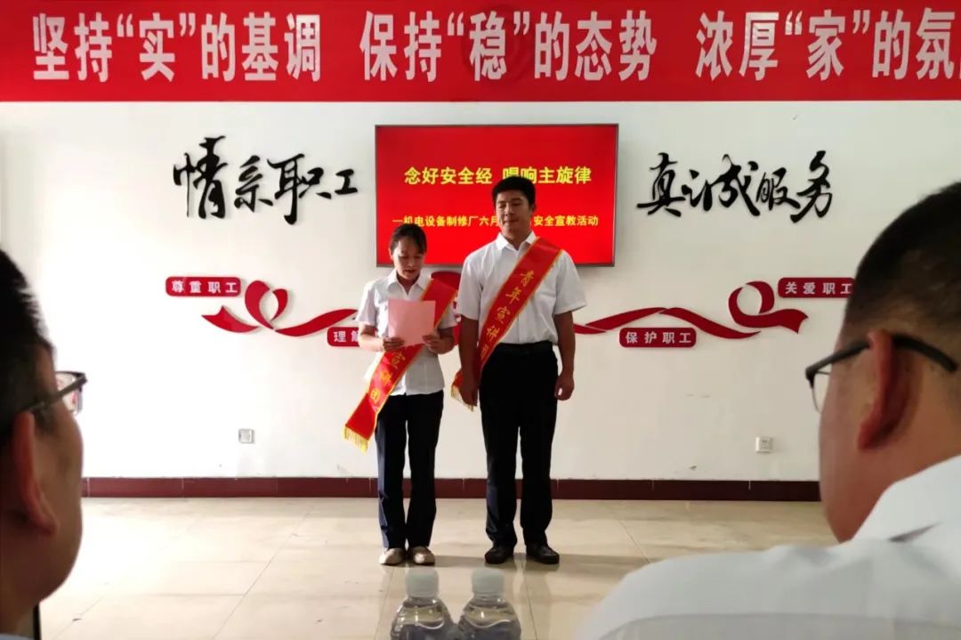 职工朋友们,抓好安全生产,关系着每位职工的切身利益,在全矿正在掀起第21个全国“安全生产月”活动热潮的关键时刻,我们坚信......”6月1日一大早,机电设备制修厂青年宣讲员仇光云在班前会上饱含深情的宣读了一封安全倡议书。“安全生产月”活动启动后,该青工委第一时间成立安全宣讲队,组织青年职工深入到各车间开展安全宣讲活动,并利用宣传栏、横幅、微信群等载体,大力宣传全国第21个“安全生产月”活动主题,在厂区营造了浓厚的安全宣教氛围。
