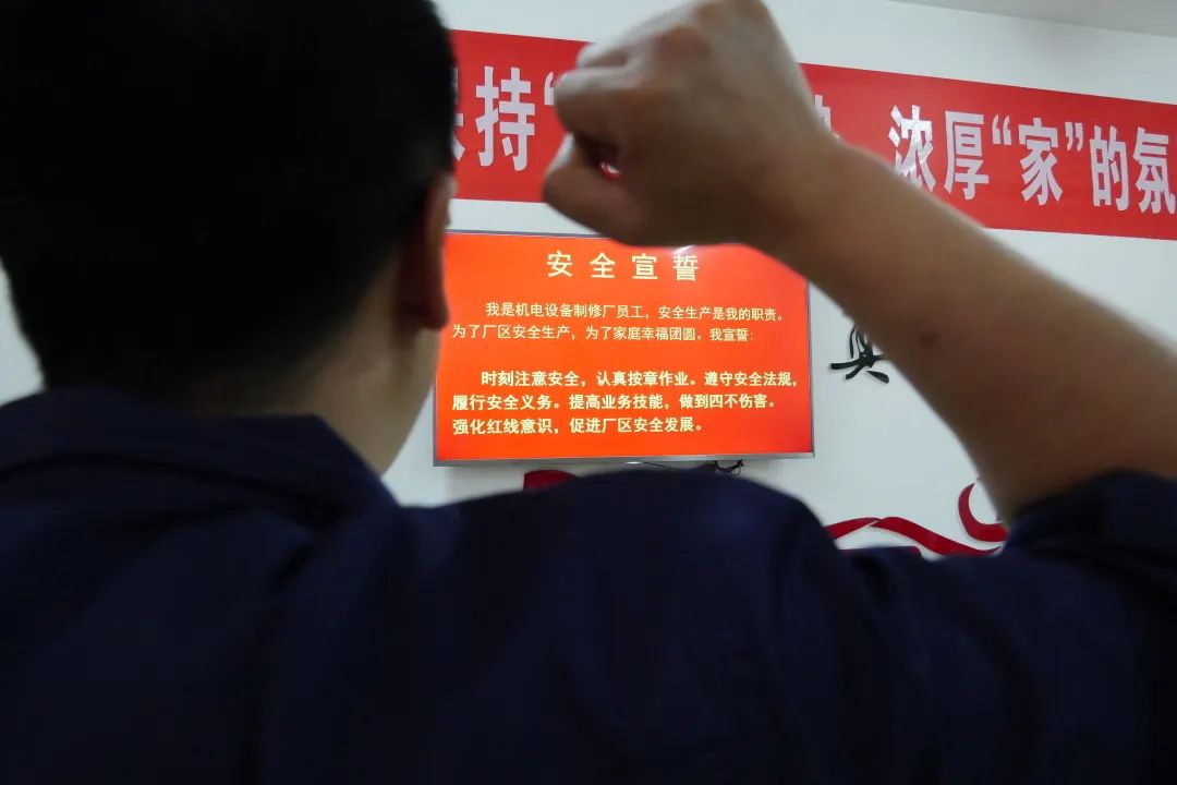 “我是机电设备制修厂青年技术员徐涛,为了厂区安全生产,家庭美满幸福我承诺:时刻牢记安全,认真按章作业;遵守安全法规......”。该厂工作微信群里发起的“安全接龙”游戏让全厂职工纷纷踊跃留言,表达参与安全生产的决心。据了解,安全生产月期间,该厂先后组织开展了安全宣誓、签订安全承诺、参与安全留言等活动,时刻提醒职工要严格遵守安全生产法律法规,履行安全生产管理职责,严守规章制度,从要我安全转变到我要安全,进一步提高了职工安全意识。