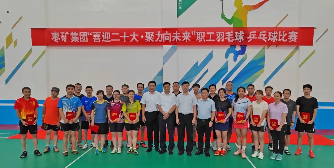 7月13日,枣矿集团“喜迎二十大·聚力向未来”职工羽毛球、乒乓球比赛在蒋庄煤矿乒羽中心举办,比赛旨在喜迎党的二十大,深入贯彻落实全民健身国家战略,丰富职工体育文化生活,大力弘扬枣矿职工顽强拼搏、明责担当的职业精神,聚力转型突破、赶超跨越的职工力量。