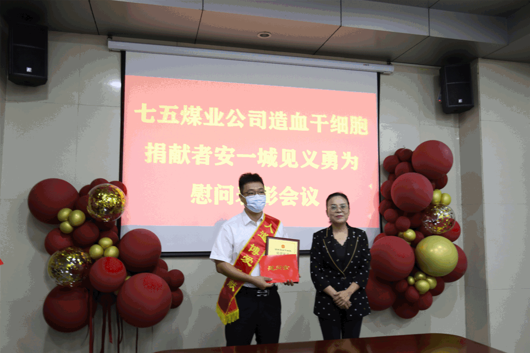 金秋送爽、丹桂飘香,9月16日,七五煤业公司党建教育基地楼前搭建的红色彩虹门格外引人注目,悬挂着“枣矿集团七五煤业公司职工安一城捐献造血干细胞顺利归来”的红色条幅吸引了广大干部职工的目光,一场为安一城举行的慰问欢迎仪式在这里举行。