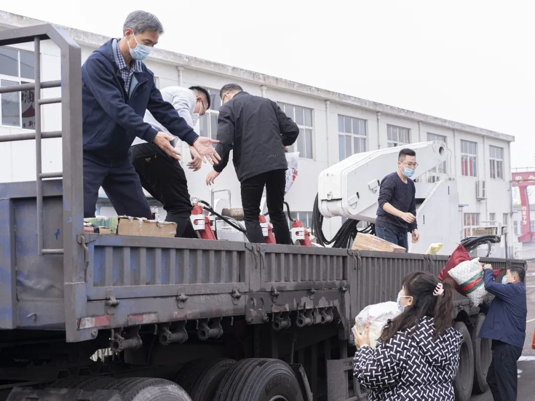 志愿者们隔空接力,在公司的志愿者们迅速集结,运输车辆到达的第一时间,志愿者们二次消杀、搬运分类、清点核对,用最短的时间将物资送到职工手上。