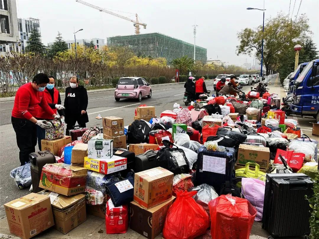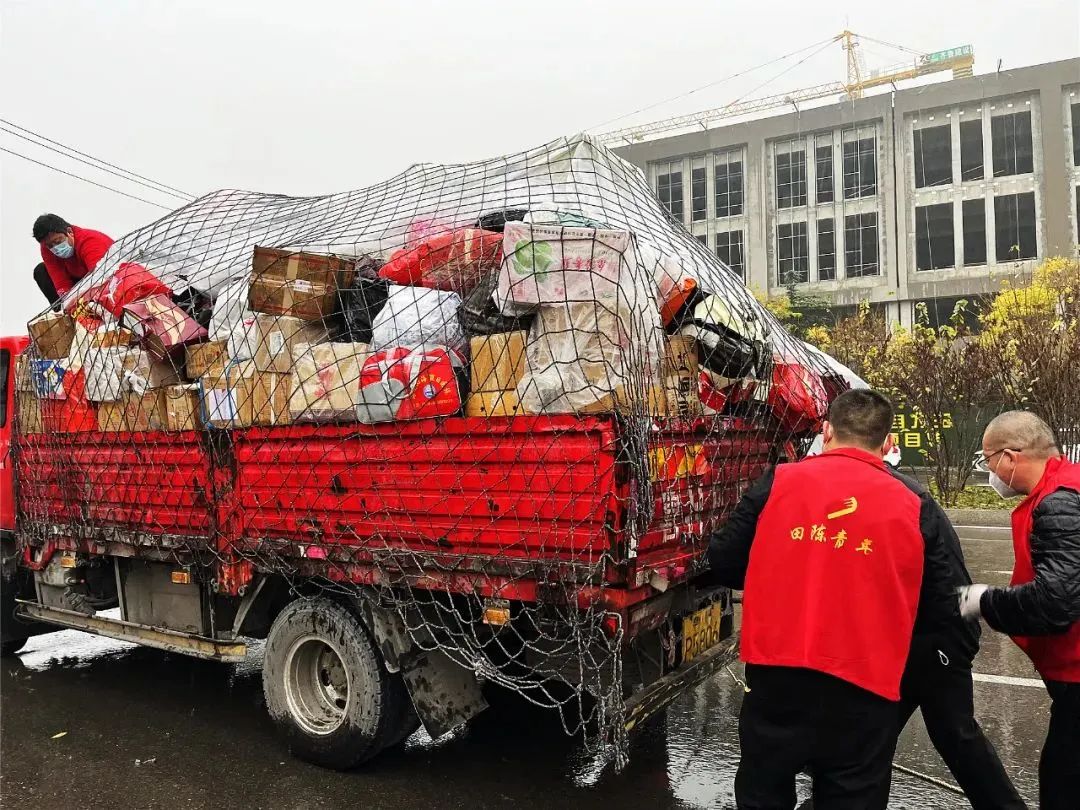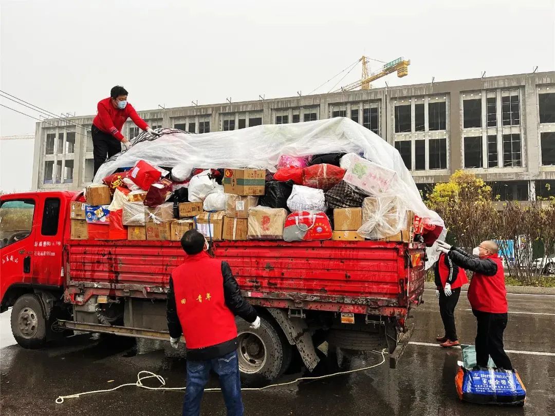 风雨中,滕州、薛城、矿生活区衣物接收点