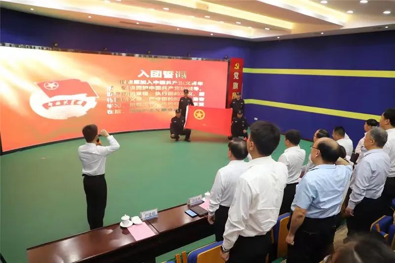 “我志愿加入中国共产主义青年团,坚决拥护中国共产党的领导,遵守团的章程……”在鲜艳的团旗下,团员青年高举右拳,庄严宣读入团誓词,熟悉又庄严的誓词回荡在每一位团员青年心中,将现场气氛推向高潮。