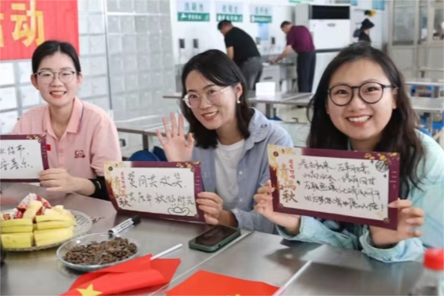 共赏中秋月,喜迎国庆节。岱庄煤业团委组织青年员工们共度中秋佳节,举行“情暖中秋·爱在岱煤”团建活动,青年员工们用嘹亮的歌声,共迎祖国华诞。活动还开展了同嘱平安寄语、团建互动游戏、齐包团圆水饺等项目,为留岗值守的青年员工送去了中秋祝福,营造了祥和、团结的节日氛围。
