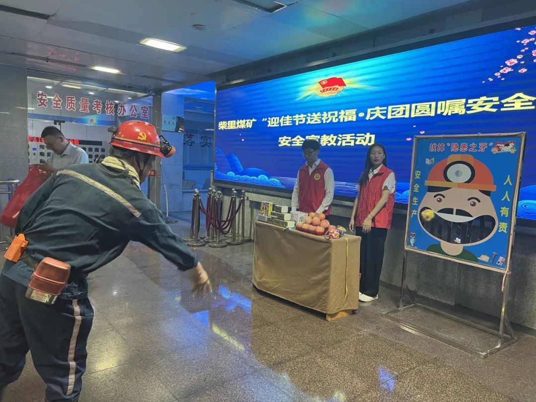 金秋逢喜国庆节。节日期间,柴里煤矿矿团委组织志愿者在井口开展“迎佳节送祝福 庆团圆嘱平安”安全宣教活动,慰问国庆期间始终坚守工作一线的井下工人,把矿党政的关怀及温暖送到广大职工心坎上,进一步增强了职工的获得感、幸福感、安全感。