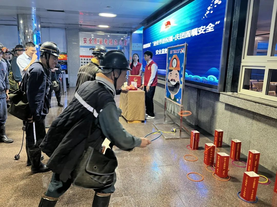 该矿团委还利用下井职工候车时间,组织开展了安全知识有奖竞答、套上安全圈等活动,内容涵盖职工应知应会、安全法律法规及应急安全常识、网络安全知识等,回答正确和套中安全词语的职工现场获得奖品一份,回答不正确的,由工作人员进行讲解,让职工们在轻松愉悦的氛围中更加熟练掌握安全知识,进一步提高了职工安全意识和安全素质。