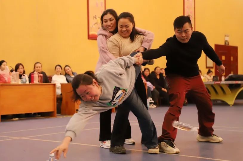 “一二一二!”“加油加油!”,铿锵有力的口号,此起彼伏的加油声,参赛青年在赛场上拼速度、比技巧,尽情挥洒汗水,场边观众高声助威、奋力呐喊、群情激昂,现场气氛欢声雷动、高潮迭起、扣人心弦。历经两个多小时的激烈角逐,精彩纷呈的趣味运动会项目在阵阵欢呼声中圆满完成。