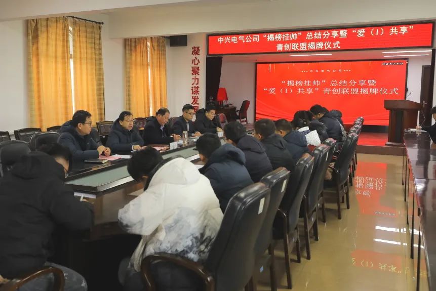 为进一步深化中兴电气公司“930”人才培养体系及“1+N”人才培养规划,加速2023年度“揭榜挂帅”项目成果转化,全面激发青年创新创效热情,2月2日上午,中兴电气公司开展“揭榜挂帅”总结分享暨“爱(I)共享”青创联盟揭牌活动。