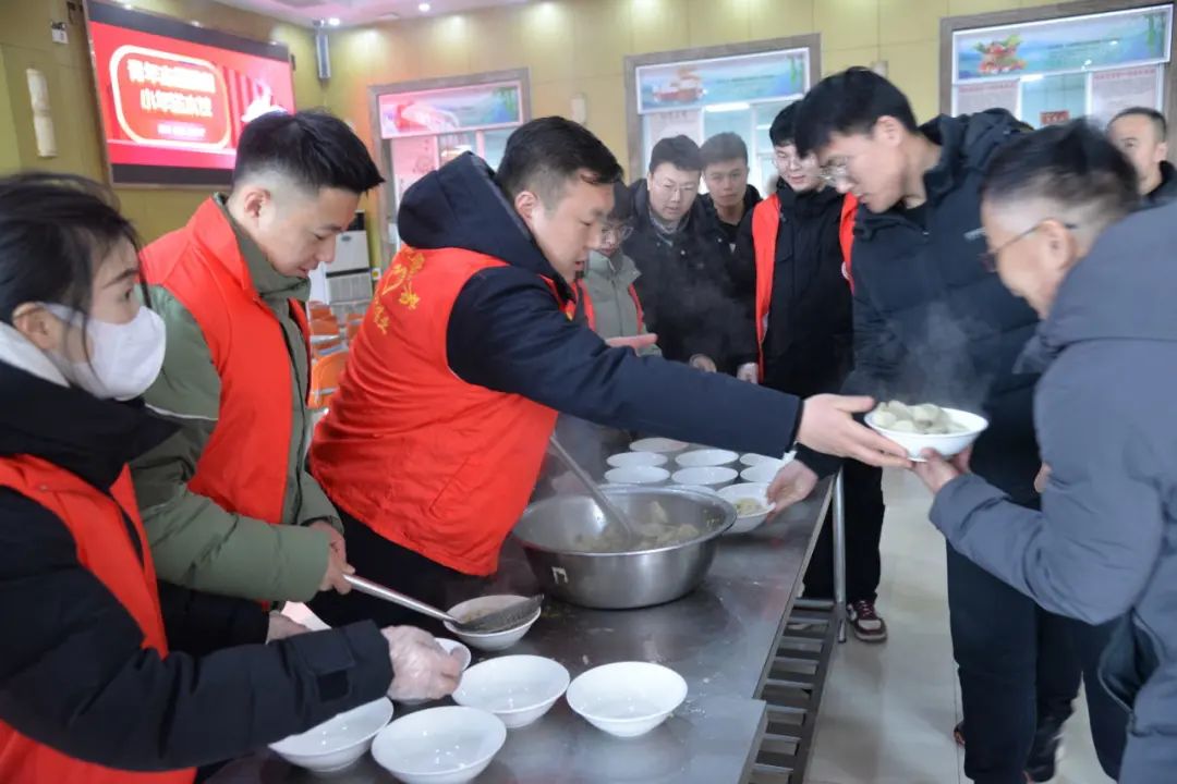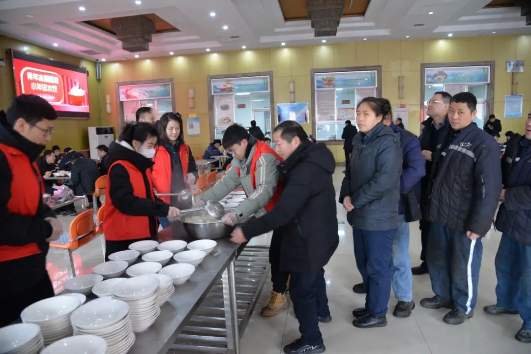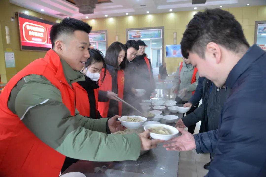 2月1日,付村煤业公司团委组织青年志愿者开展迎新春送温暖“爱岗·爱家·爱枣矿“小年送水饺活动。