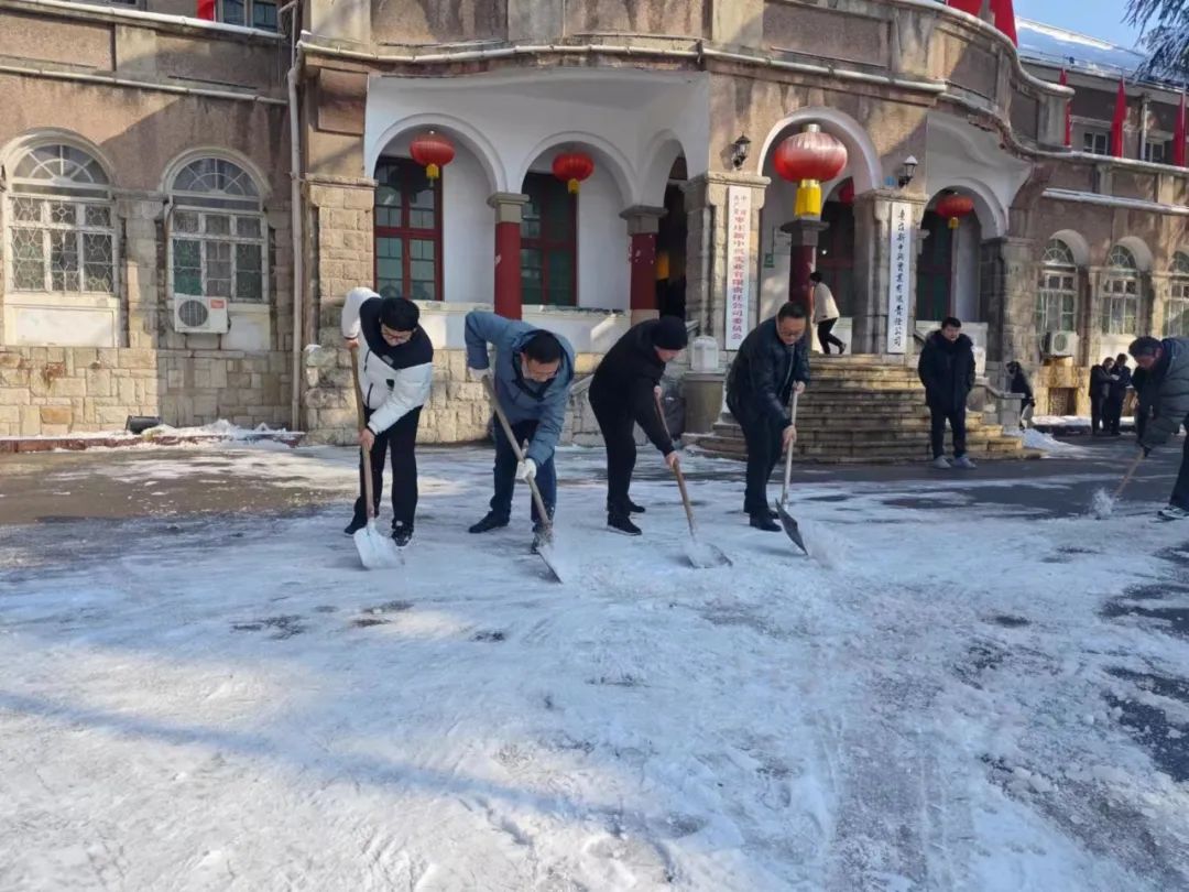 大家躬着身子,握着铁锨、扫帚,你铲我扫,齐心协力、相互配合,干的热火朝天。经过2个多小时的努力,大楼门前一条条安全道路清晰可见。大家不畏风雪交加、不畏低温严寒,以实际行动服务职工群众。