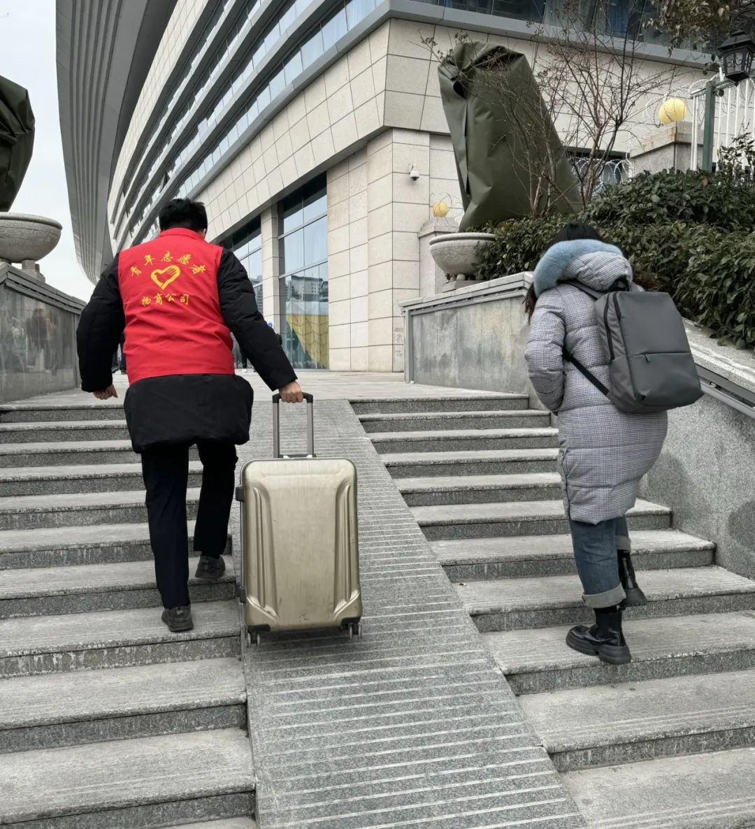 凛冽的寒风冻不住送关怀热心,深冬的严寒阻挡不了送站的步伐。志愿者们帮助返乡大学生职工提行李,并祝福他们新春快乐,让大家在寒冬腊月感受到了温暖与安心。