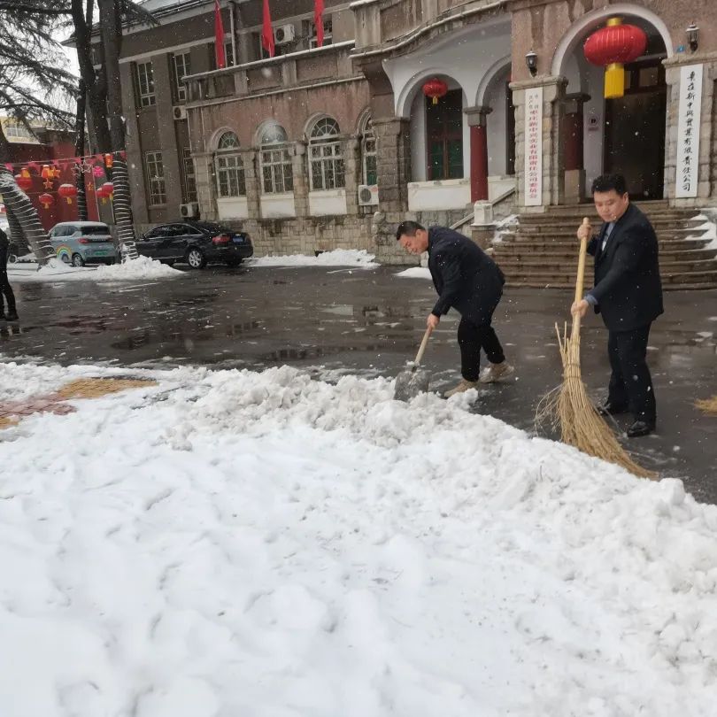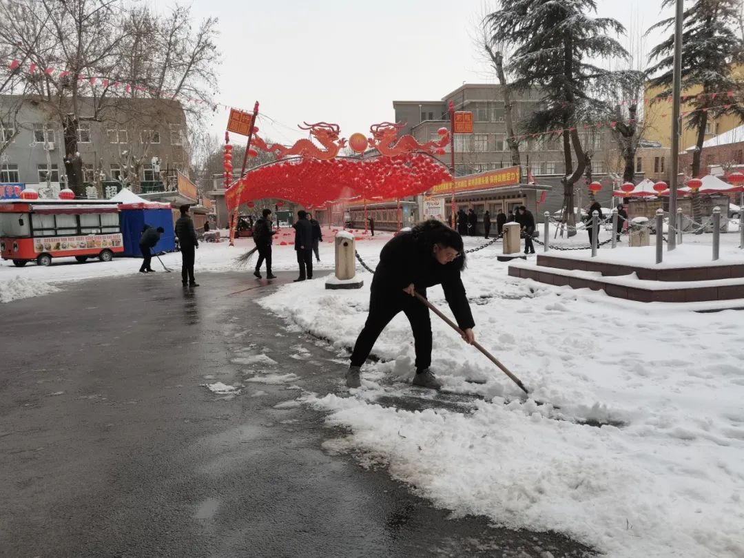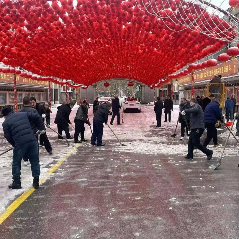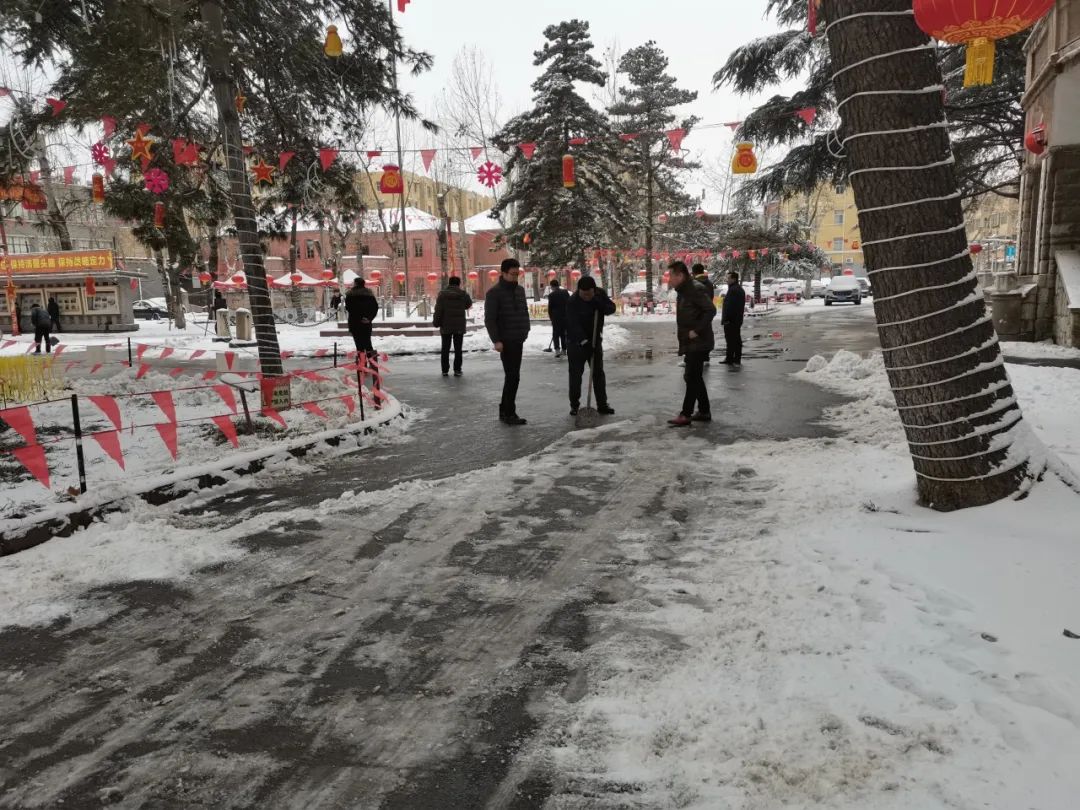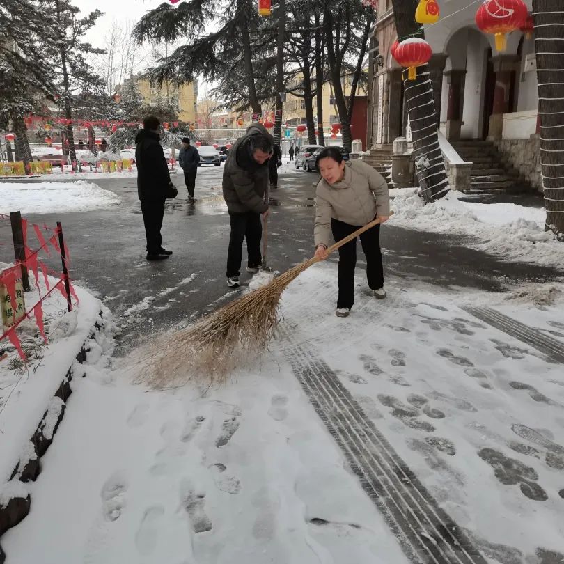 他们不畏严寒、分工明确,挥舞着手中的扫把、铁锹等工具将积雪和冰层一一铲除。在大家共同努力下,一条条干净整洁的道路被清理出来,保障了交通顺畅,保证了群众出行安全。