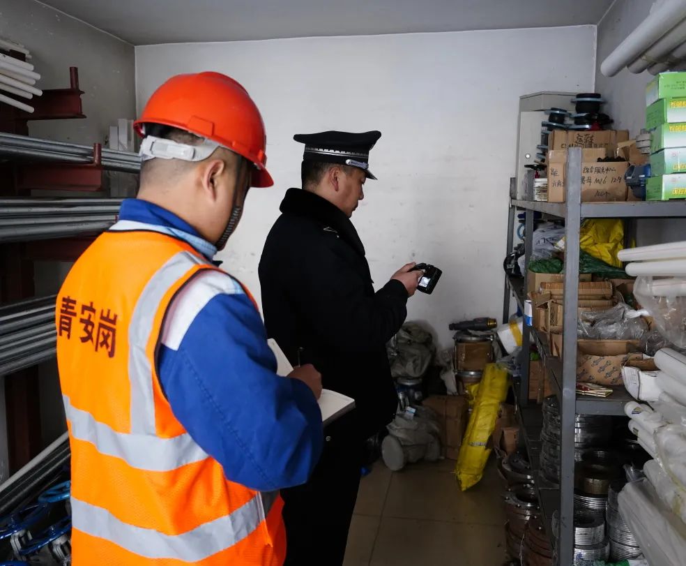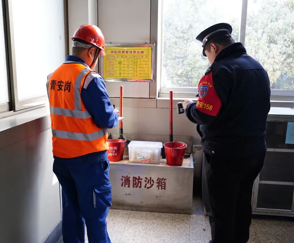 上午,青安岗员们在井口宣誓后,迅速奔赴责任区域,开展巡查工作。近期火灾事故频发,小分队重点巡查主副井绞车房、各车间岗点的消防措施完好情况。仔细查看消防水带维护记录、灭火器有效期、灭火沙是否板结,确保消防措施安全可靠。