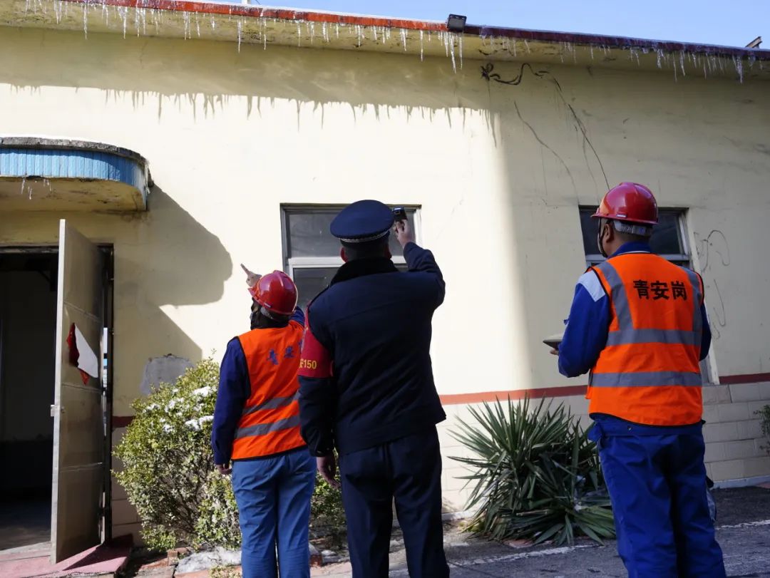 巡查结束后,青安岗员们找来工具,共同将悬挂冰棱清除干净,防止掉落伤人。