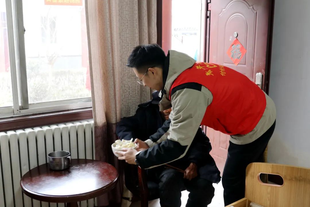 清扫院落垃圾、擦拭桌椅尘土、摆放活动工具、整理床铺衣物......一个个“红马甲”穿梭在敬老院的房前屋后,忙得不亦乐乎!老人们看在眼里,乐在心里,时不时聚头交流一下,嘴上露出甜甜的笑容。