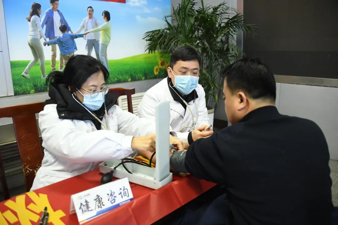 活动现场,医务人员张勇仔细询问工人师傅的相关病史及目前身体状况,为他们进行血压、血糖等常规检查。并耐心的向他们介绍了高血压、糖尿病等慢性病的预防保健知识,提高他们防范疾病的意识。