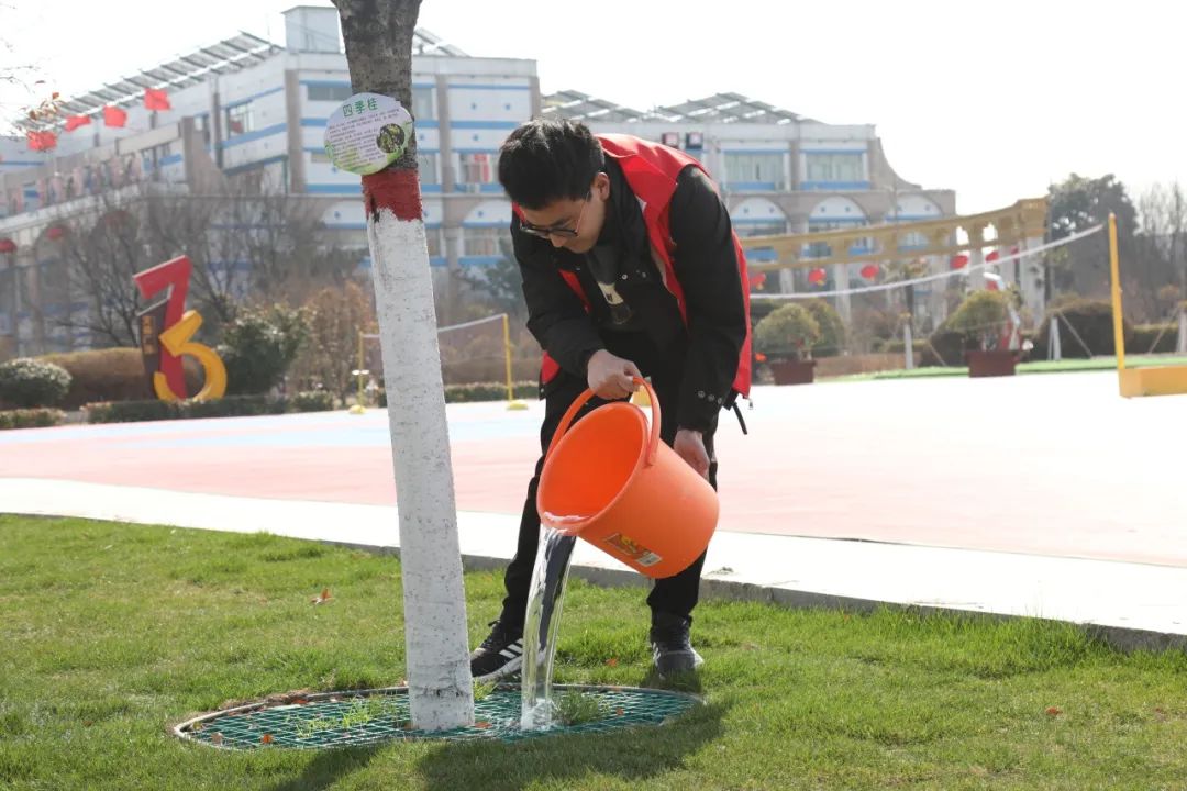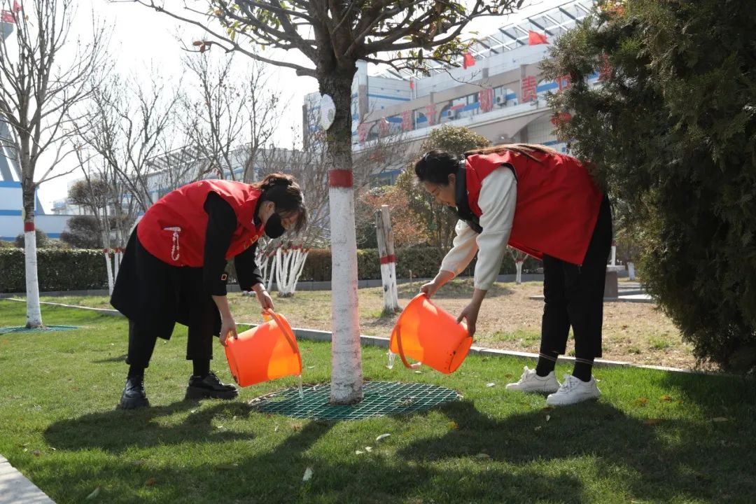 冲施肥如何正确施用?用水量该怎样掌握?经验丰富的志愿者为其他志愿者讲解了绿植管理要领,并现场示范。随后10余名志愿者们身穿红马甲,紧握铁锹,拎着小桶,三五人一组,有的铲土,有的施肥,有的复土……分工协作,秩序井然,劳动场面热火朝天,恰似春光明媚。
