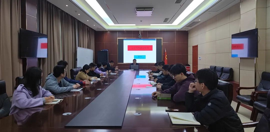 本次培训邀请到公司综合办公室副主任曹瑞金对各单位青年人才进行公文写作培训。曹主任结合多年工作经验,分享了自己对公文写作的心得与体会,精心设置了《公文写作基础知识》等课程,立足企业实际,聚焦公文写作的重点难点,逐一对照分析,深入浅出地传授写作思路、方法和技巧,对如何高质量做好公文写作进行了全面讲解。