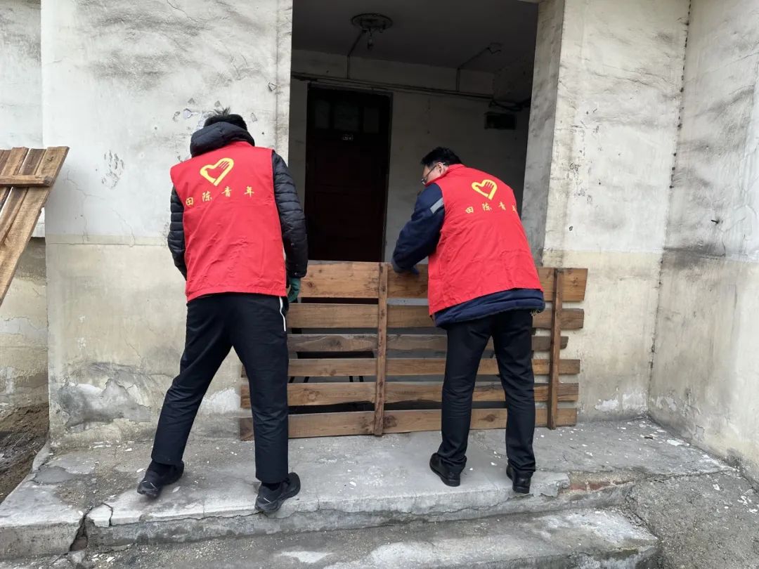 活动中,“暖心田”志愿者来到职工公寓,对年久失修的荒废公寓楼进行全面封锁管理。