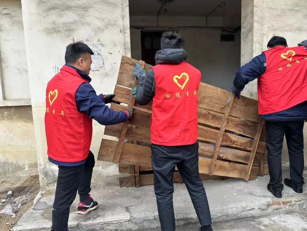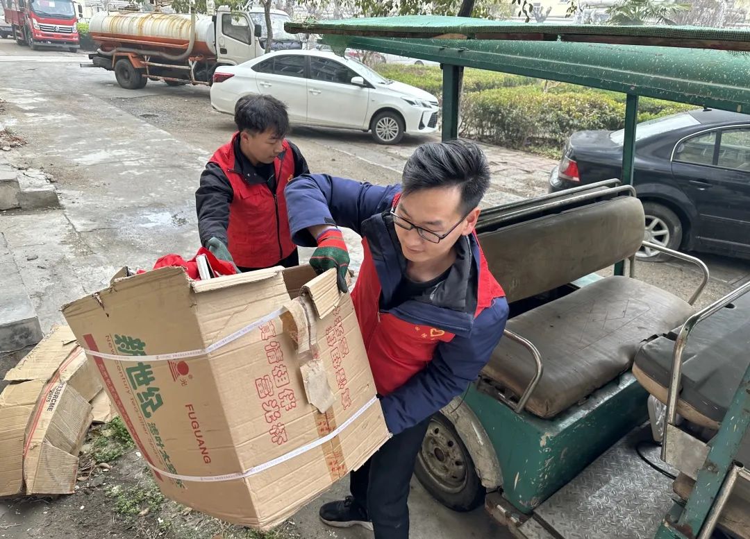 对公寓楼内堆积的杂物进行整理、回收再利用。