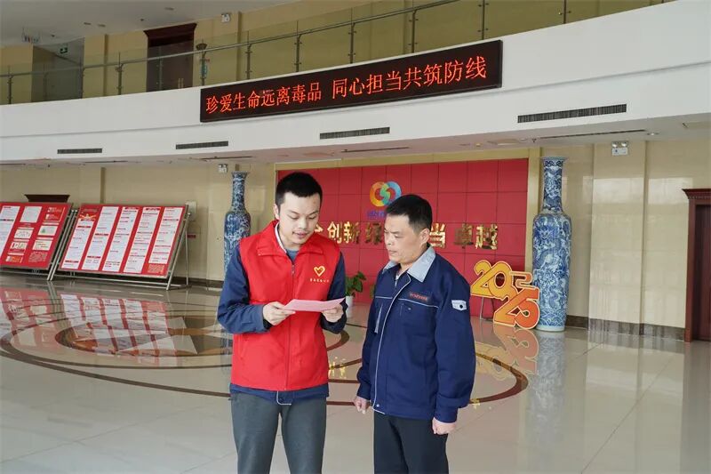 同时,该公司青年宣讲员深入办公楼、生产车间开展禁毒知识宣讲活动,向职工发放识毒防毒小知识、“共筑防毒墙”倡议书等资料,详细讲解滥用涉麻精药品等成瘾性物质的严重危害,提醒职工留意新型毒品的隐蔽性,提高抵御毒品的能力与防范意识,为企业高质量发展筑牢“防毒墙”。
