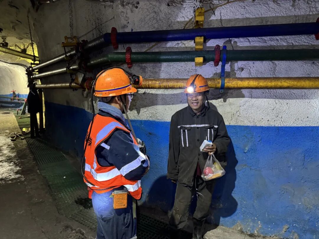 在井下工作面,青安岗员们带着精心准备的慰问品,逐一送到工人师傅手中,详细询问大家的作业内容和身体状况,叮嘱大家在抢抓生产进度的同时务必重视自身安全,让凛冽的井下涌动着阵阵暖意。“师傅们辛苦了,公司党政始终牵挂着大家,一定要时刻把安全放在心上。”