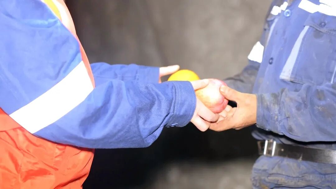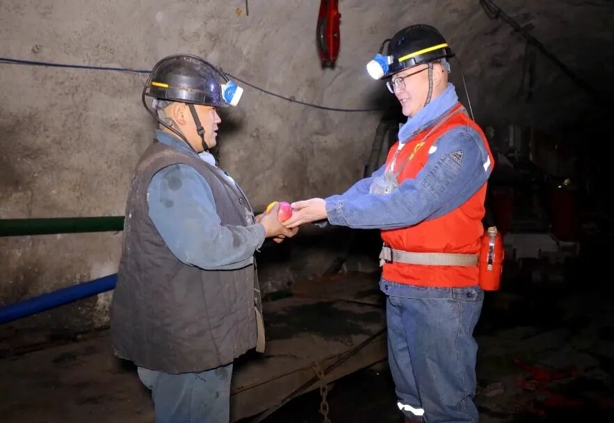 伴着井下巷道的灯光,志愿者队伍带着物资出发,第一站抵达293下12安装工作面。刚走到巷口,就听见设备运转的轰鸣声,矿工师傅们身着厚重工装,正专注地进行支架安装作业,额角的汗珠顺着安全帽带滑落。“师傅们,吃个苹果歇一会儿!”志愿者们提高声音,让话语穿透机器的轰鸣,矿工们闻声抬头,停下手中的活,当看到递来的 “平安果” 和印着暖心话语的寄语卡时,脸上的疲惫瞬间被笑容取代。
