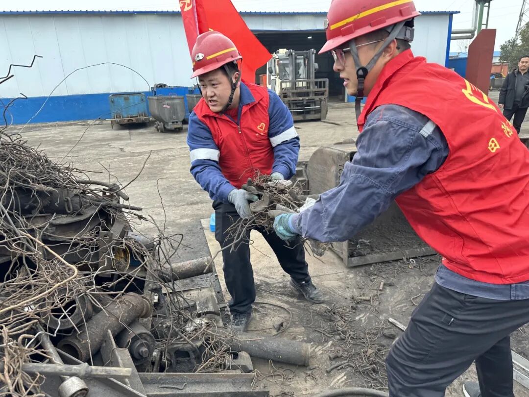 修旧利废志愿服务的现场,志愿者们走进设备制修厂,化身“能工巧匠”,对废旧设备进行分类整理,以实际行动践行勤俭节约、艰苦奋斗的优良作风,充分发挥团员青年在矿井高质量发展中的生力军作用,用实干诠释雷锋精神。